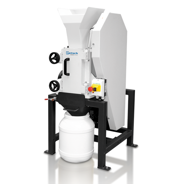 Čelisťový drtič BB 250 kompletní s drtícími čelistmi, třecími deskami, dvířky, násypkou, 10 l záchytnou nádobou a stojanem