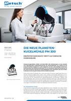 Planeten-Kugelmühlen erfüllen und übertreffen alle Anforderungen an eine schnelle und reproduzierbare Probenzerkleinerung auf Analysenfeinheit. Sie werden für die anspruchsvollsten Aufgaben im Labor eingesetzt, von der routinemäßigen Probenaufbereitung über die Kolloidvermahlung bis hin zur komplexen Materialentwicklung. Mit der neuen PM 300 hat RETSCH ein leistungsfähiges Gerät entwickelt, das einen hohen Probendurchsatz bei gleichzeitig einfacher Bedienung bietet.
