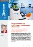 El mayor reto para los laboratorios de análisis en la industria alimenticia es la gran diversidad de alimentos con sus diferentes propiedades. Antes de análisis propiamente dicho, el material de la muestra – que puede variar enormemente en cuanto a su dureza, contenido de grasas/azúcares o humedad – deber ser homogeneizado y reducido a una granulometría lo suficientemente pequeña. El molino de cuchillas GRINDOMIX GM 200 marca pautas en la preparación de muestras de alimentos. Sus cuchillas de acero afiladas garantizan una homogeneización perfecta de muestras con un alto contenido de agua, aceite, azúcar o grasa.