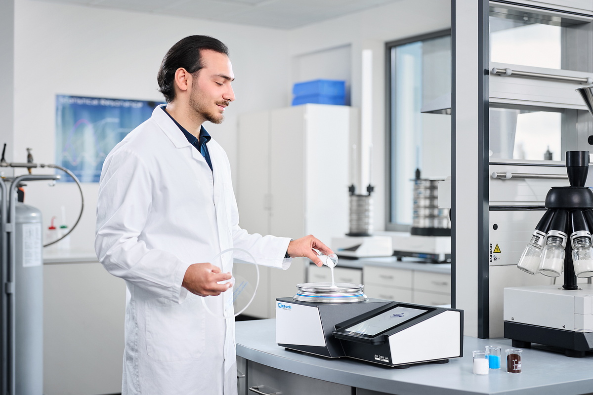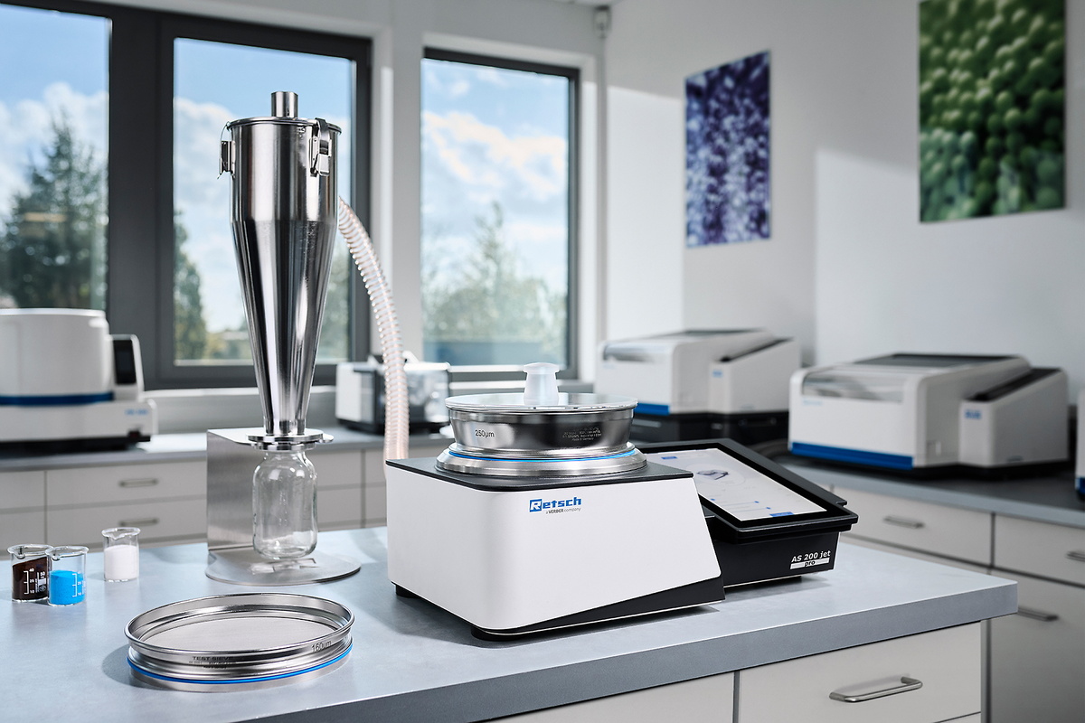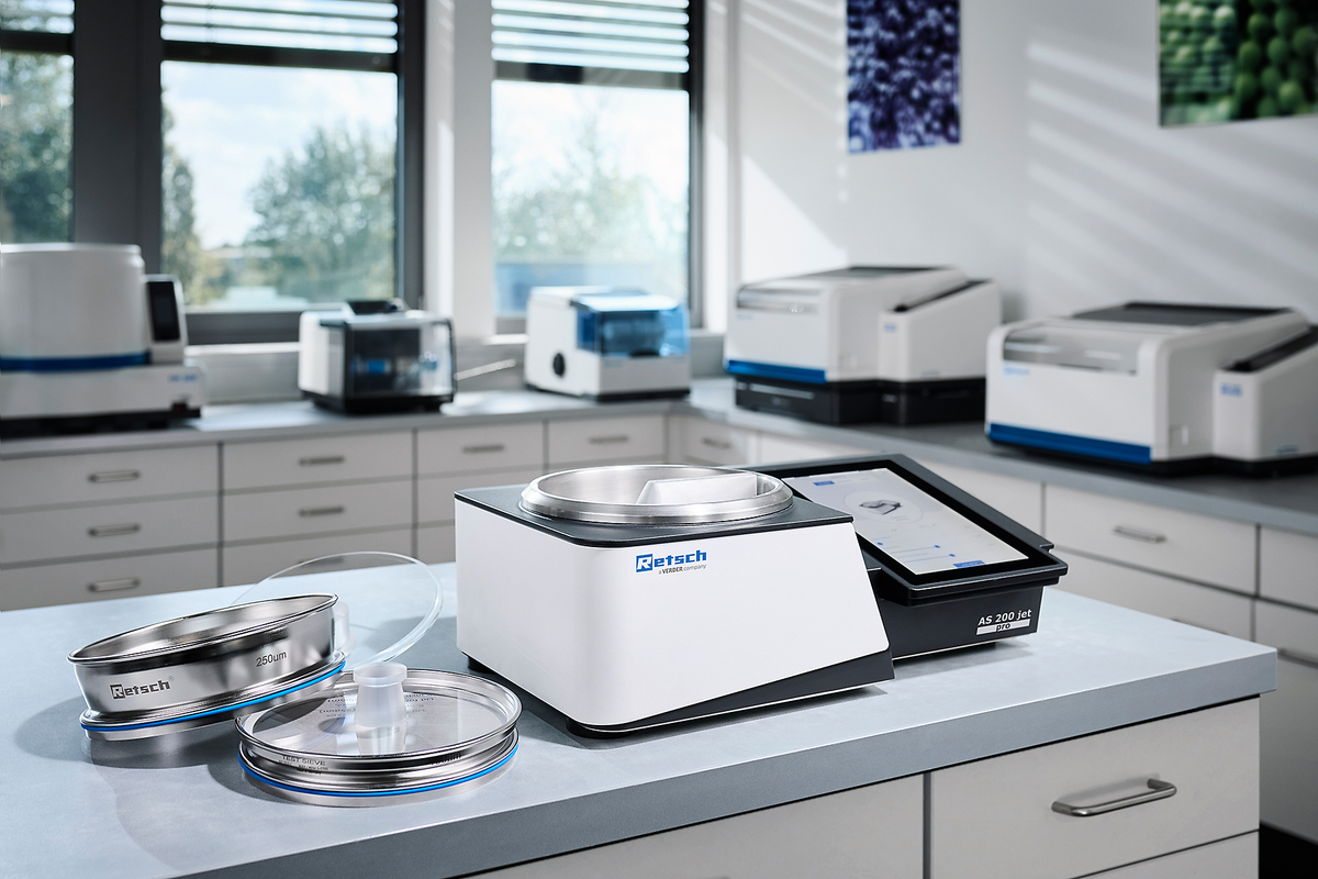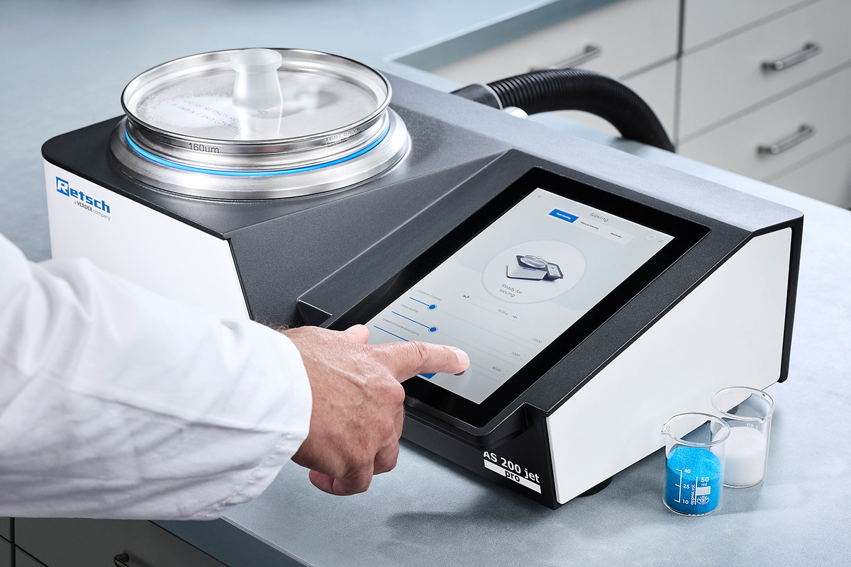 For sieving specialists: With the AS 200 jet pro and the GMP-conform AS 200 jet pharma, laboratory teams get a space-saving and user-friendly all-in-one sieving machine.