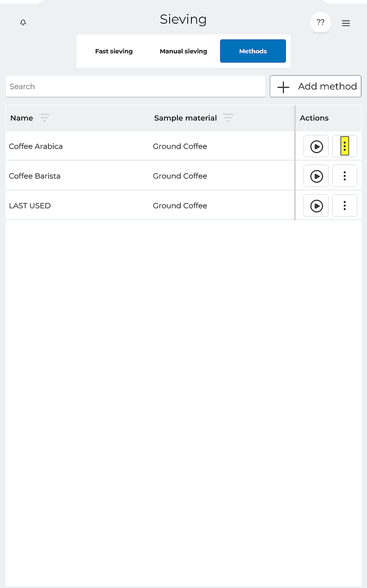 | Mode of operation | Fast sieving, manual sieving and methods |