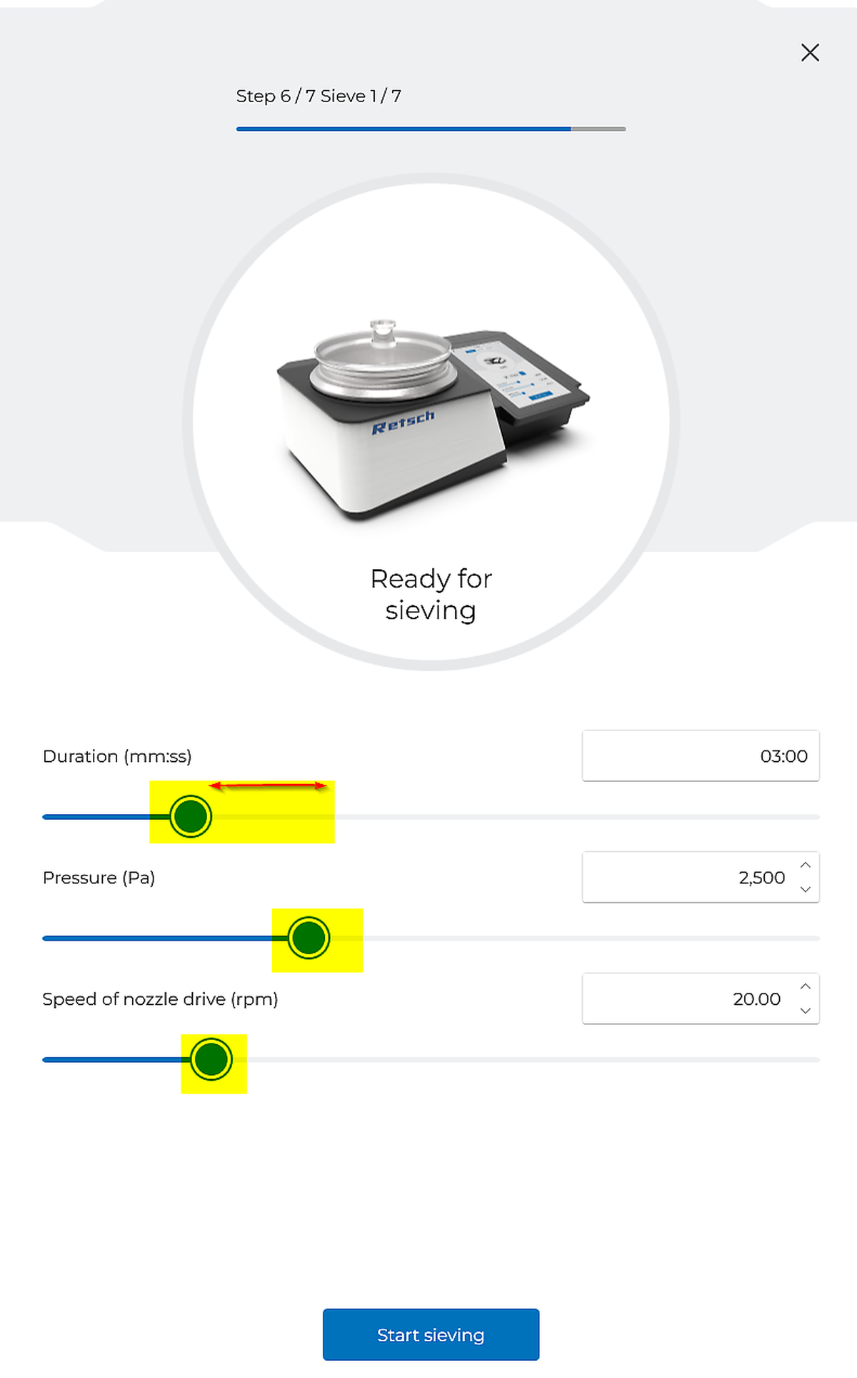 After selecting the desired sieving method, the software guides you step by step through the sieving process. You can precisely control all relevant parameters via the control panel of the AS 200 jet pro. In addition, Guided sieving improves safety, as each step is clearly described, thereby reducing human error.