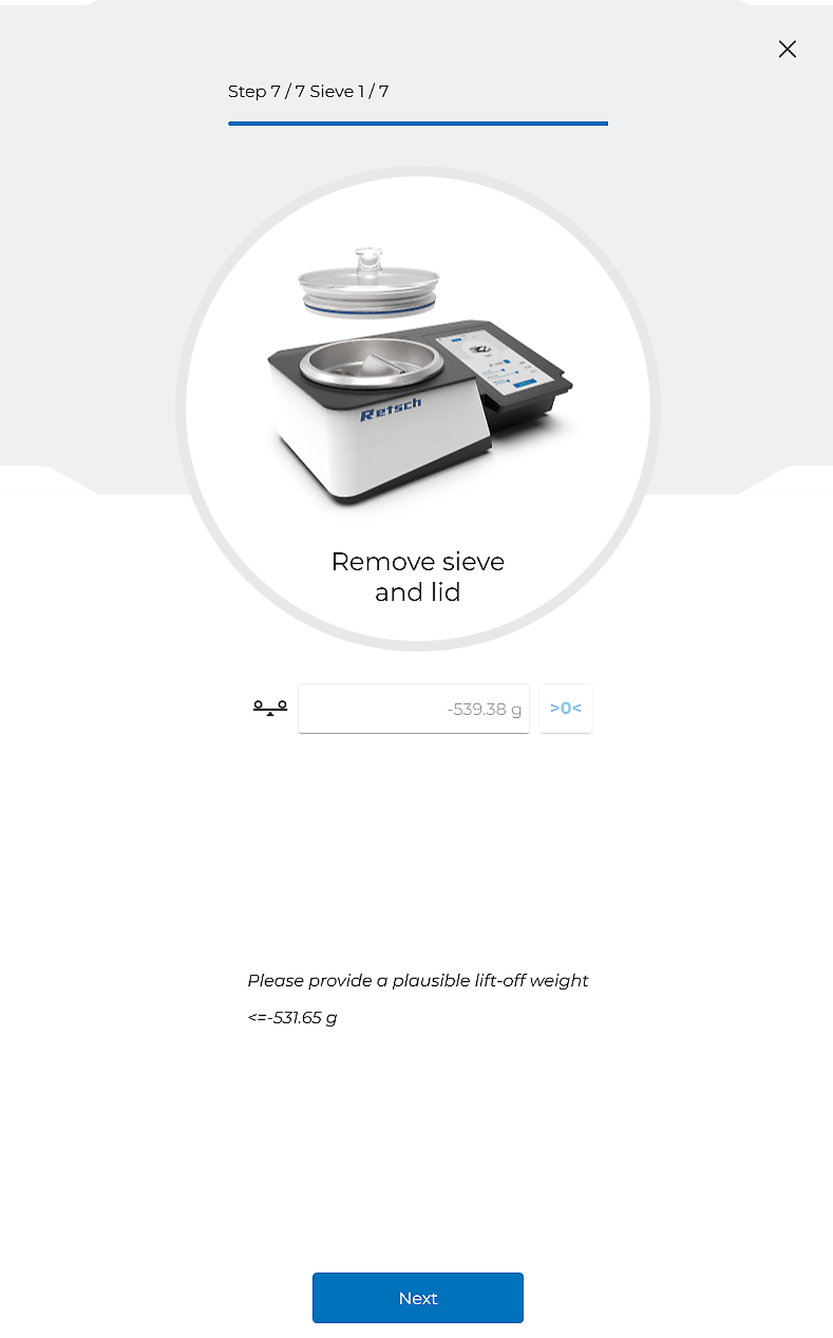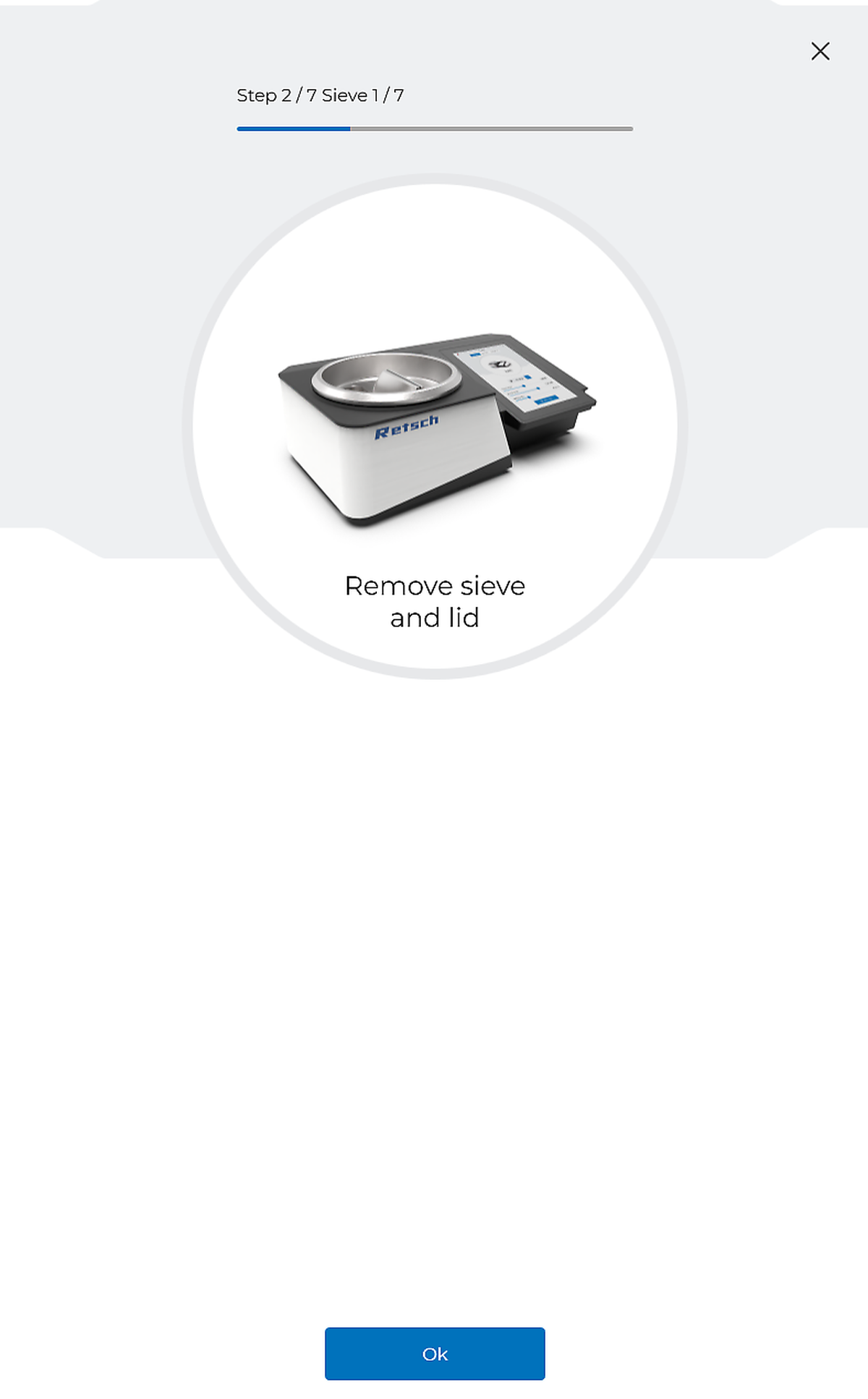 The internal wizard guides the user step by step through the entire process. Every process step is clearly explained and ensures reliable sieve processes. Human errors are reduced to a minimum.