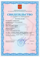 Свидетельство об утверждении типа средств измерений DE.C.27.001.A № 54073 от 12 февраля 2014 г. Срок межповерочного интервала - 1 год.